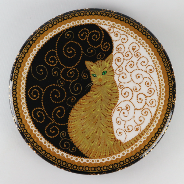 Gato en blanco, negro y dorado